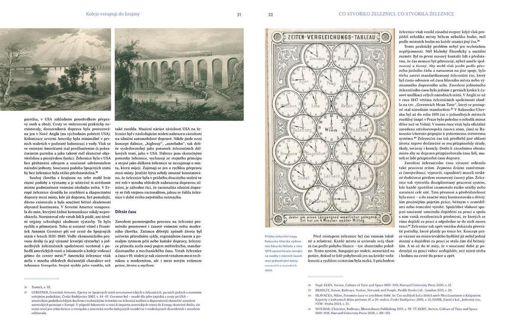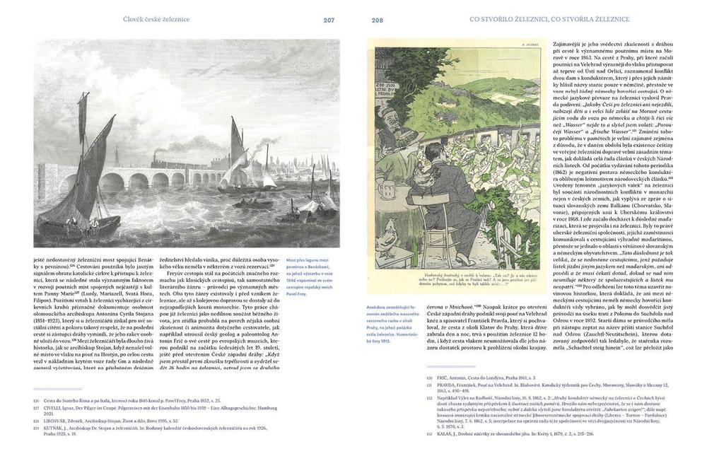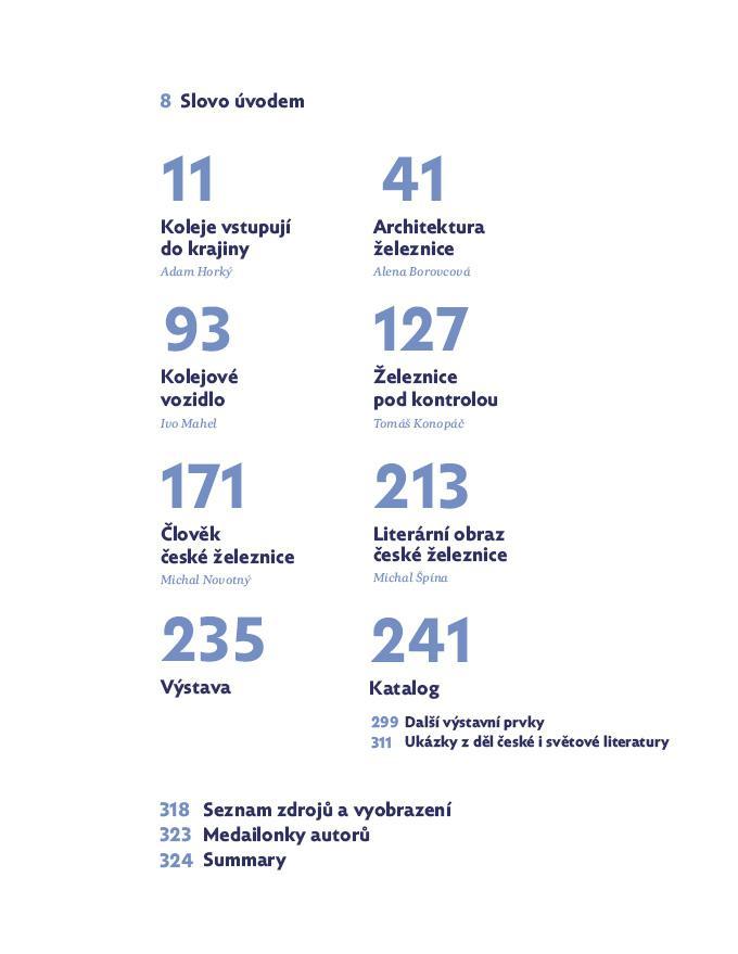 Originální a v našem prostoru nepříliš známý pohled na železnici nabízí kapitola o jejím odrazu v českojazyčné literatuře, jejímž autorem je Michal Špína. Na příkladech textů krásné literatury od domácích autorů z období 19. a počátku 20. století vykresluje pestrou směsici pohledů na fenomén železnice, která na sebe brala podobu někdy idylického, jindy podvratného, občas tragického univerza, do něhož autoři prózy i poezie umisťovali životy a osudy svých hrdinů a dnešnímu čtenáři skrze ně podávají zprávu o tom, že představy o železnici mohou být mnohé, jen ne jednotvárné a předvídatelné.