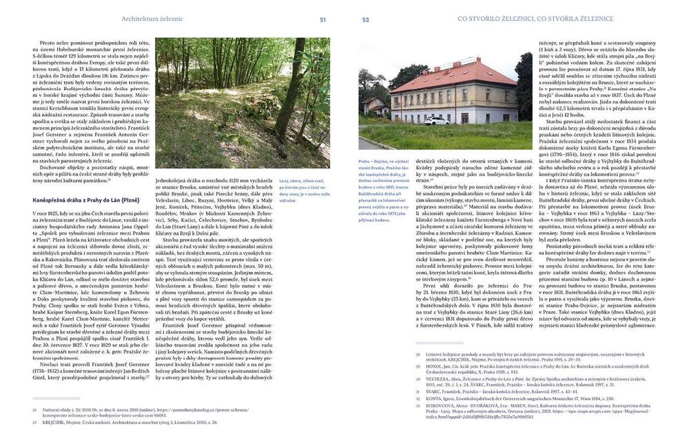 Alena Borovcová seznamuje čtenáře s železničním stavitelstvím a architekturou jakožto novým a svébytným oborem, který se vyvinul ze specifických provozních potřeb dráhy a musel se v několika málo desetiletích etablovat do podoby plně funkčního a typizovaného systému, jehož na první pohled rozpoznatelné prvky s obdivem sledujeme na nádražích a podél tratí dodnes. Speciální pozornost věnuje reprezentativním nádražním stavbám ve velkých městech, které udivovaly svou nákladností a velkolepostí.